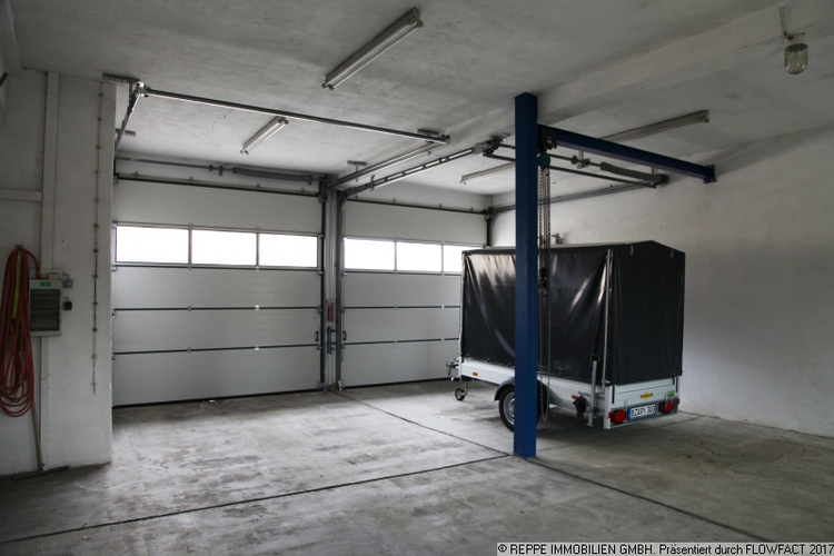Das Objekt besteht aus 2 großen Fahrzeughallen mit Rolltor, einer Werkstatt sowie separatem Büro, Archiv sowie Sozialraum mit Küche und WC. Weiterhin ist ein Kellerbereich vorhanden.